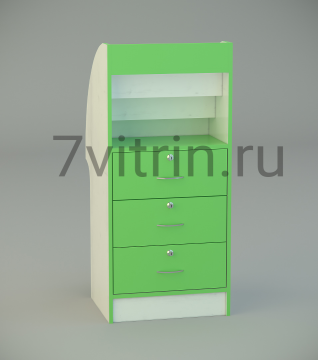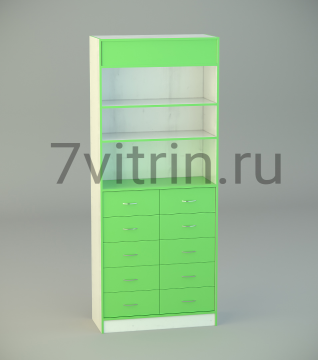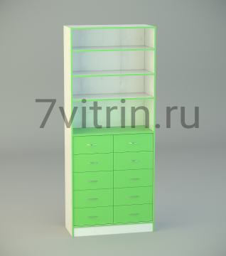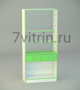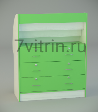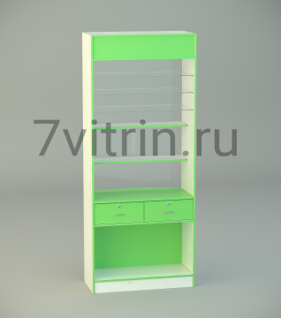 Шкаф с полками и ящиками. Рабочее место продавца окно выдачи
