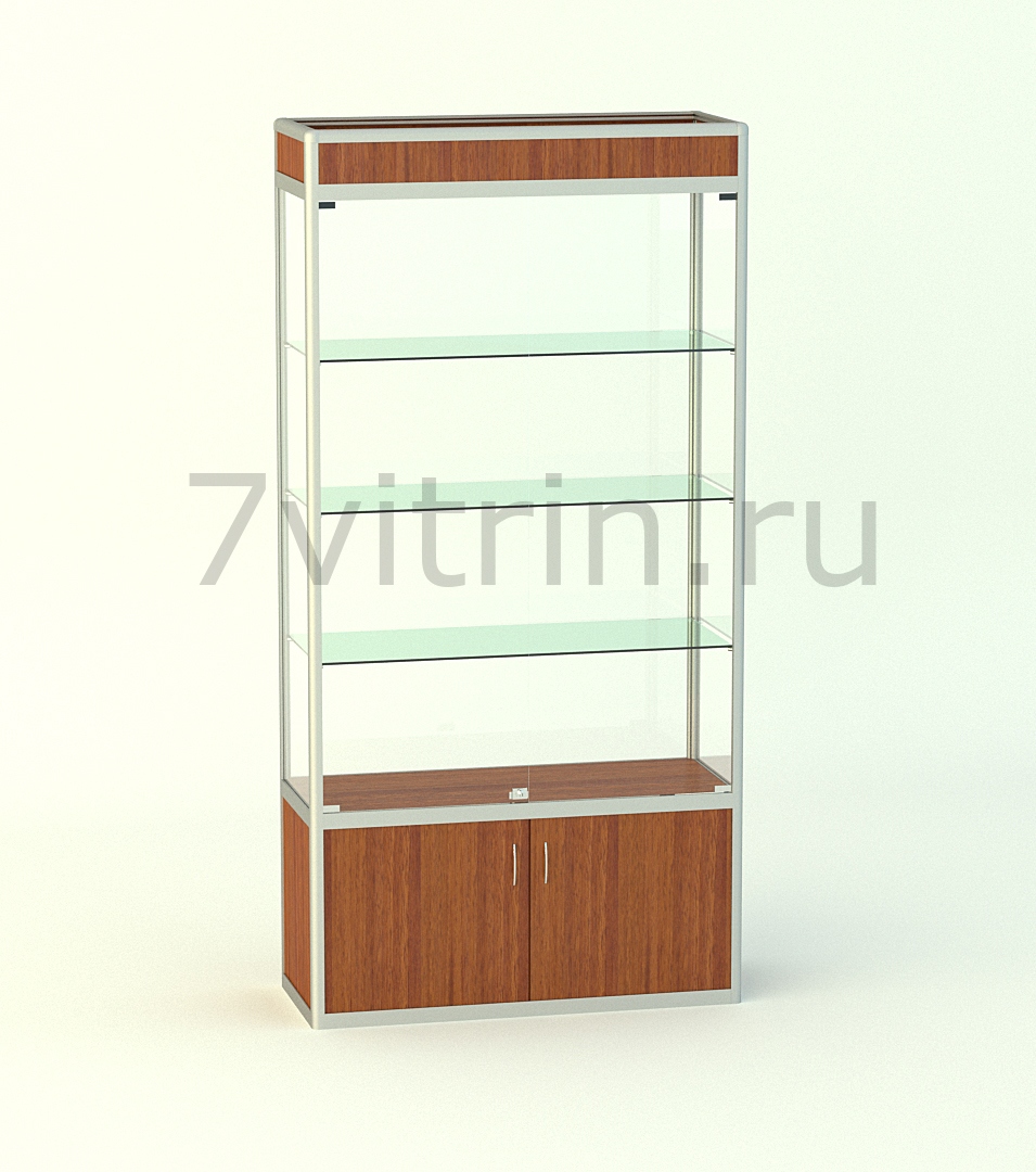Надежный каркас алюминиевого профиля, в комплекте: 1-прямая секция, замки для распашных дверей, 3 стеклянные регулируемые полки на секцию. Створки: полированное стекло 5мм. механизм - распашной. Подиум без полки, высотой 500мм. Задняя стенка -стекло.