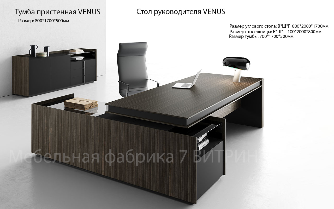 Мебель изготовлена из МДФ со шпоном Файнлайн. В комплект входит L-обр стол, тумба с ящиками и стеклом. Толщина столешницы 100мм.Фасады Эмаль.
