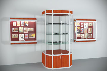 Комплект музейных витрин "История"Комплект состоит из 2х навесных витрин и шестигранной витрины с полками. - 700901007949 - 700901007949