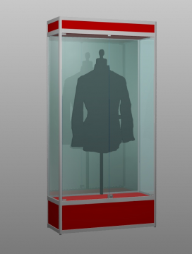Навесная витрина имеет размер 1000х300х1000мм с распашной системой открывания дверей, без полок, и шестиугольной витриной островного типа размером 2000х800х800мм. С распашной системой открывания дверей в стеклянной части и накопителе.
