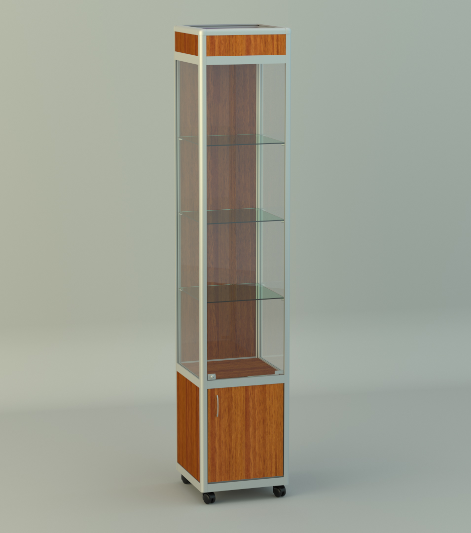 Витрина серии Альфа1 из каркаса алюминиевого профиля с передвижными опорами В*Г*Ш 2000х400х400мм 3 стекл.полки. Дверцы распашные. Очень удобно на рынках и в торговых центрах. Выкатил, поработал и закатил обратно, нужны частые перестановки мебели- очень удобно. Возможно изготовление других размеров на заказ.