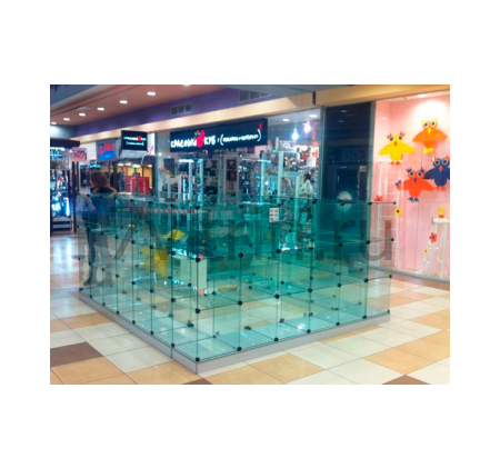 Павильон П-образный из стеклянных кубиков серии "СТЕЛЛАЖ" размер ячейки 400х400мм. Размер 1300мм-высота. длина 2484мм. ширина 2914мм.