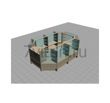 Павильон из ДСП "Лидер" островного типа Высотой 1200мм глубиной витрин 400мм и Габаритными размерами 2100х3000ммПавильон состоит из отдельно стоящих, разновысотных, модулей собранных в одну композицию. Размер угловых модулей 1200х600х600мм ВхГхШРазмер боковых прилавков 900х400х900мм.Размер фронтального и откатного прилавка 900х400х800мм. В Павильоне не учтены внутренние двери, их можно заказать дополнительно.