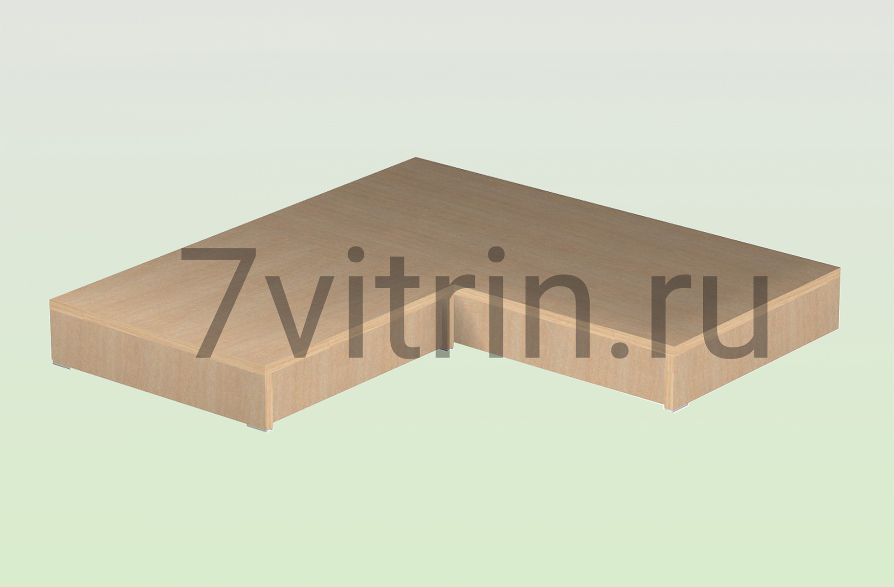 Подиум для угловой конструкции из стеклянных кубов. Сторона "А" 986мм* сторона "В" 986мм* глубина 430мм* высота 100мм