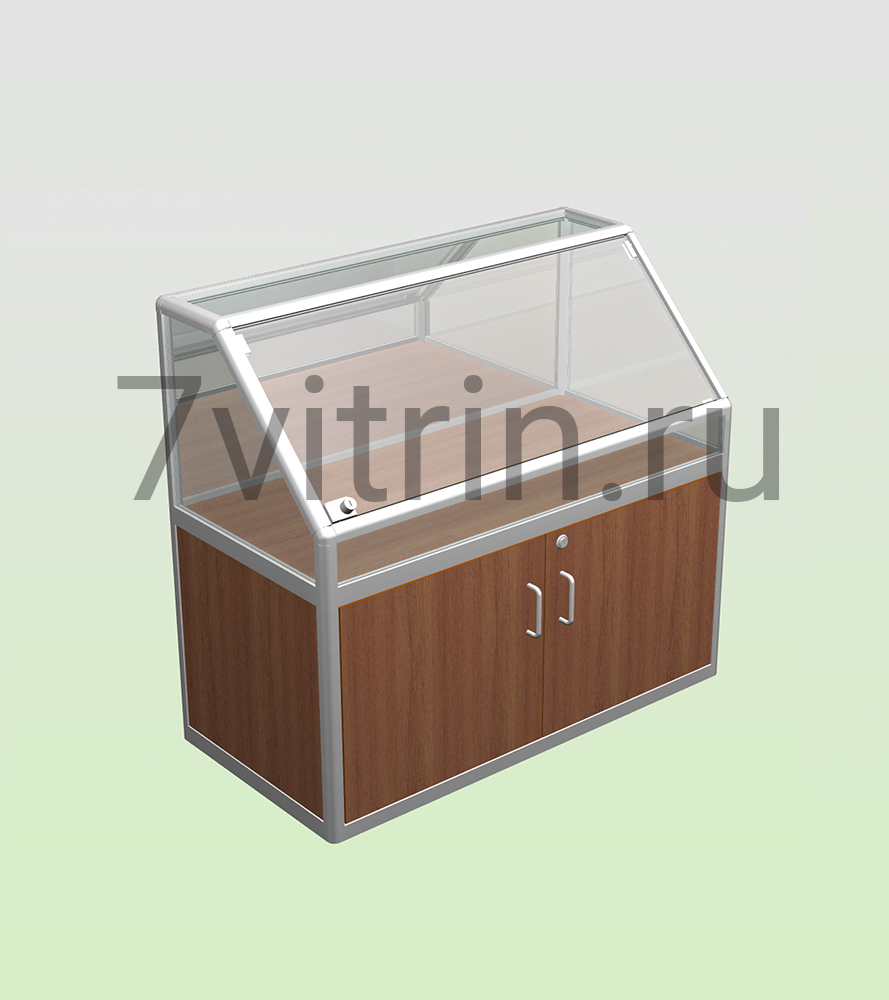 Прилавок торговый серии Рубин 900 с накопителем и дверями. Размер 900*500*900ммИзготовлен из каркаса алюминиевоо профиля, стекла, ЛДСП. Стеклянная прозрачная выставочная часть, Подиум высотой 500мм, с дверями и замком. - 700901007595 - 700901007595