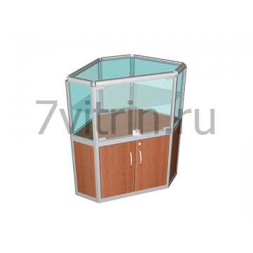 Изготовлен из каркаса алюминиевого профиля, стекла, ЛДСП.