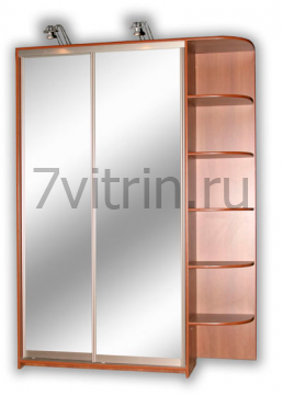 Шкаф купе с зеркало и приставной секцией. 2000*600*1600мм с радиусными полками.