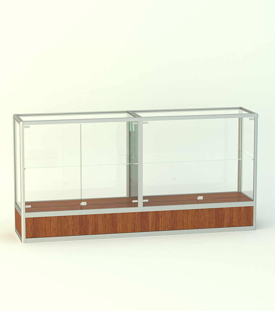 Витрина для музея 2-х секционная Бирюза 2Каркас алюминиевого профиля, стекло, ЛДСП. прямая полка, возможно обтянуть тканью,створка распашная с замкомРазмер: ВхГхШ 900х400х2000мм. Витрина изготавливается на заказ. - 700901008074 - 700901008074
