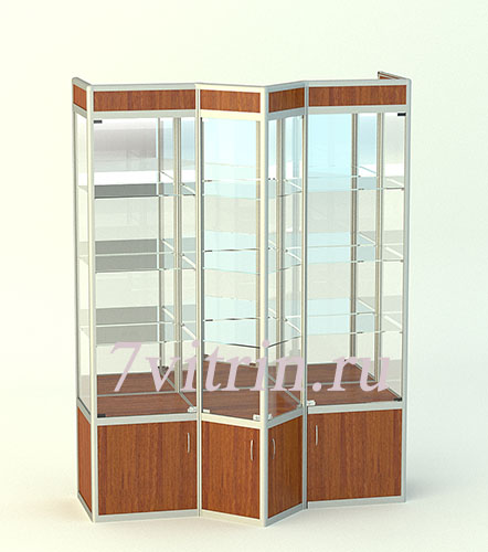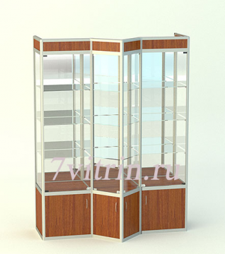 Витрина для кубков 2000х600х1500мм 3 стеклянные полки на секцию. Фриз. Замки. Створки стекло 5мм. распашные. Накопитель 500мм. В дпнную витрину можно встроить точечную зеркальную подсветку, а также светодиодные.