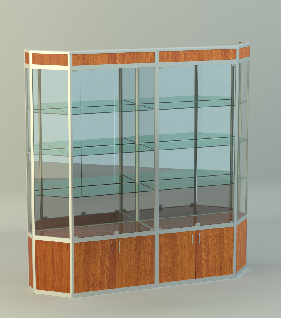Характеристики Стеклянная витрина двухсекционная Алмаз подиум 500мм