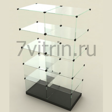 Стеклянный куб 10, 2-х секционный, вертикального исполнения.Размер: ВхГхШ 2170х430х836ммПредназначен для демонстрации предметов, товаров.Изготовлен из прозрачного стекла 5мм., 400х400мм., с отполированными краями, собирается с помощью соединителей из ударопрочного пластика АБС. Комплектуется подставкой из ЛДСП 16мм. высотой 100мм., в габарит витрины. Цвет подставки может быть изменен. Размер стекла можно скорректировать. Упакован в картон, в разобранном виде. Инструкция по сборке.Дверью не комплектуеся, и не предусмотрено.