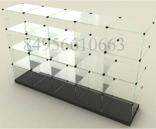 Стеклянный куб 20, 5-х секционный.Размер: ВхГхШ 1750х430х2060ммПредназначен для демонстрации предметов, товаров.Изготовлен из прозрачного стекла 5мм., 400х400мм., с отполированными краями, собирается с помощью соединителей из ударопрочного пластика АБС. Комплектуется подставкой из ЛДСП 16мм. высотой 100мм., в габарит витрины. Цвет подставки может быть изменен. Размер стекла можно скорректировать. Упакован в картон, в разобранном виде. Инструкция по сборке.Дверью не комплектуеся, и не предусмотрено.