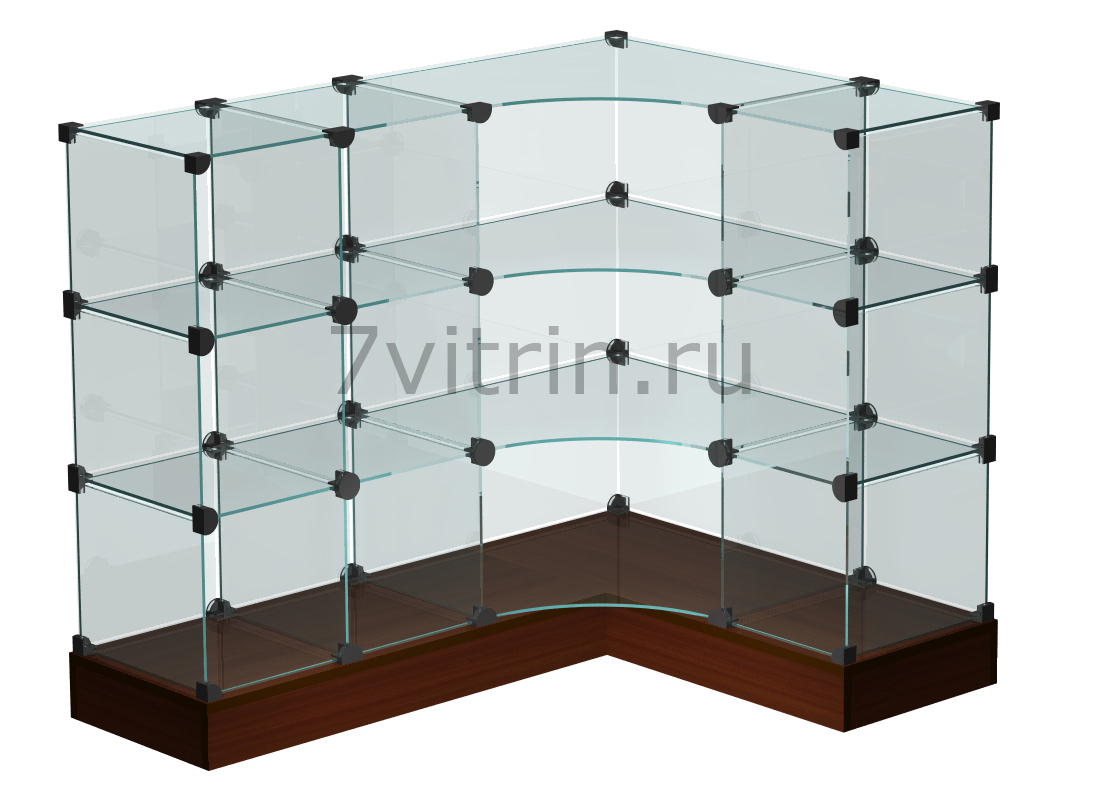 Стеклянный прилавок угловой. Размер ВхГхД1хД2 1348х430х1006х794. Ячейки 400х200х400 12 ячеек. Подиум 100мм. - СПУ2 - СПУ2