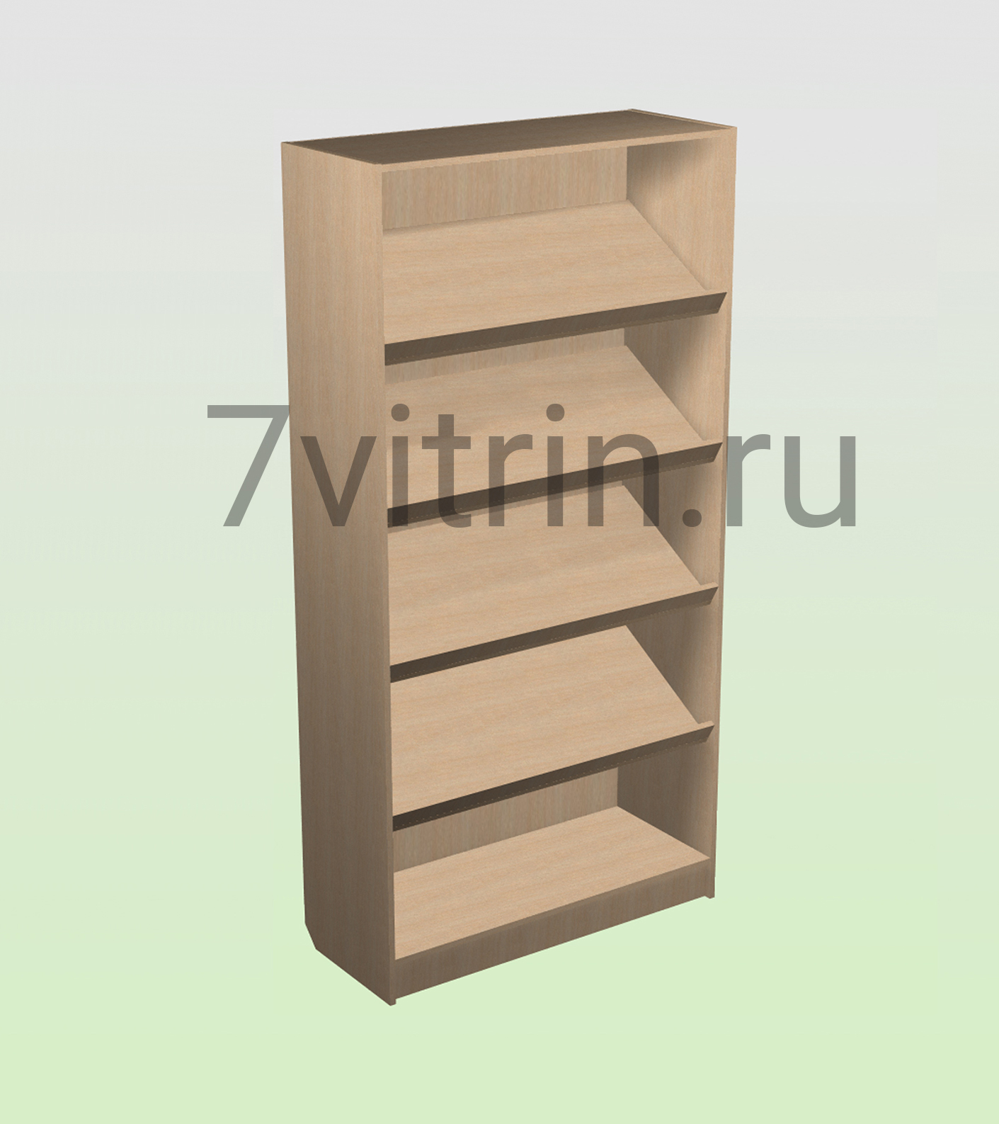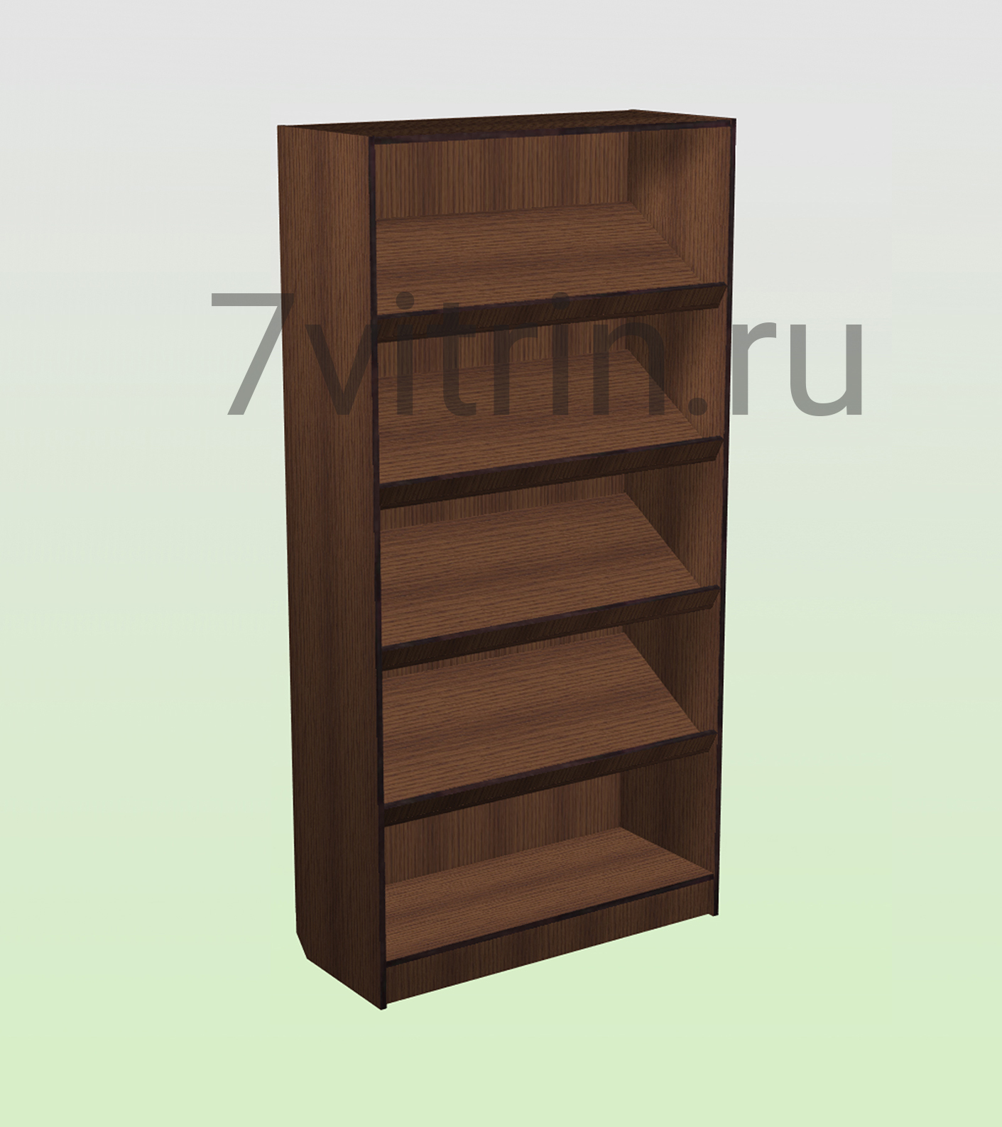Стеллаж торговый из ДСП с наклонными полками 2000х400х900мм. Стеллаж изготовлен из ЛДСП толщиной 16мм. Производства КРОНОШПАН. В комплекте 4 стационарные полки с бортиком ограничителем. Задняя стенка МДФ белого цвета. Доступные цветовые декоры узнавайте у менеджеров.