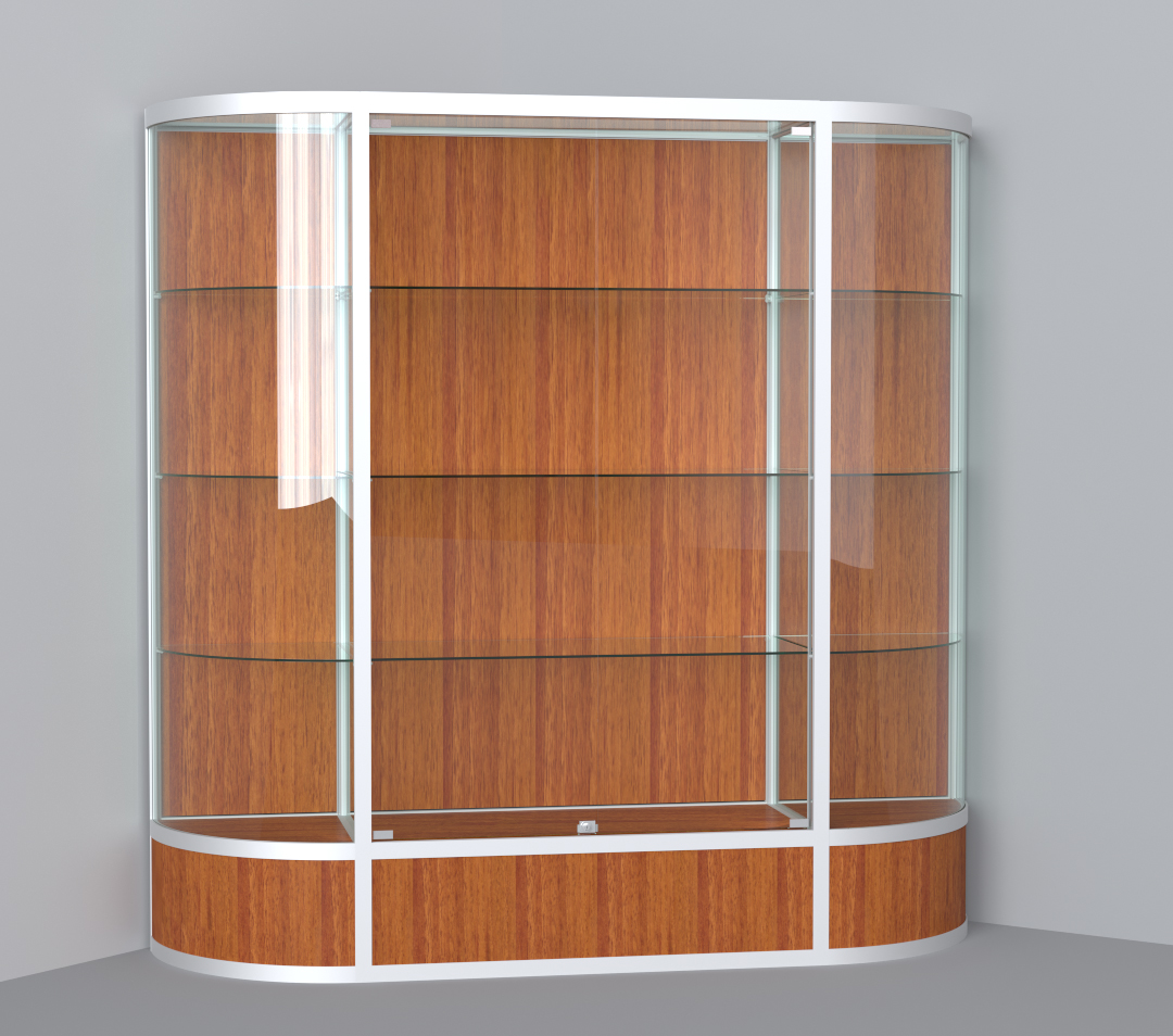 В витрине из профиля в стандартной комплектации: подиум 300мм. 3 стеклянные полки на секцию из стекла 6мм, стеклянные дверцы- стекло 5мм, замок накладной для стекла, также присутствует задняя стенка из лакированого МДФ. Дополнительно можно установить подсветку, как светодиодную, так и галогеновую. Для отправки в регион, можно заказать дополнительную деревянную упаковку- обрешетку.
