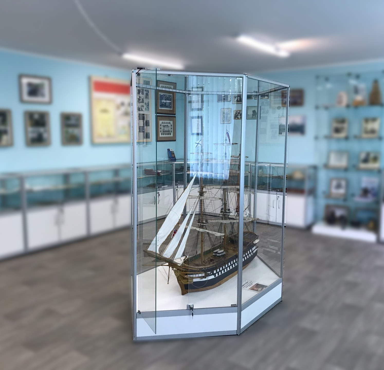 Витрина для макета музейного экспоната.Размер: 2000*1000*1500ммВитрина изготовлена из каркаса алюминиевого профиля, стекла и ЛДСП. Подиум высотой 200мм., стеклянные двери распашные, с замком. Возможно установить в витрину, светодиодную подсветку. (может повлиять на конечную стоимость витрины) - 700901008049 - 700901008049