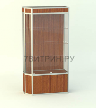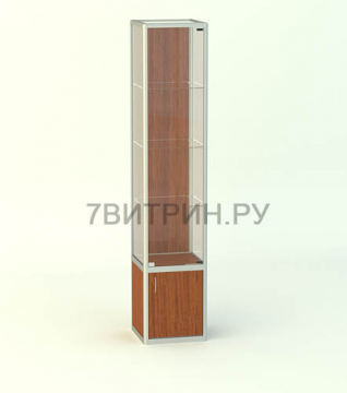 Стеклянная витрина из алюминиевого профиля "Малахит" без фриза. Размер 2000х400х400мм. без фриза, с тумбой накопителем высотой 500мм. В комплектации: Задняя стенка МДФ, 1 регулируемая стеклянная полка, 1 распашная стеклянная дверь, 2 замка, для стекла и тумбы.Дополнительно можно заказать: