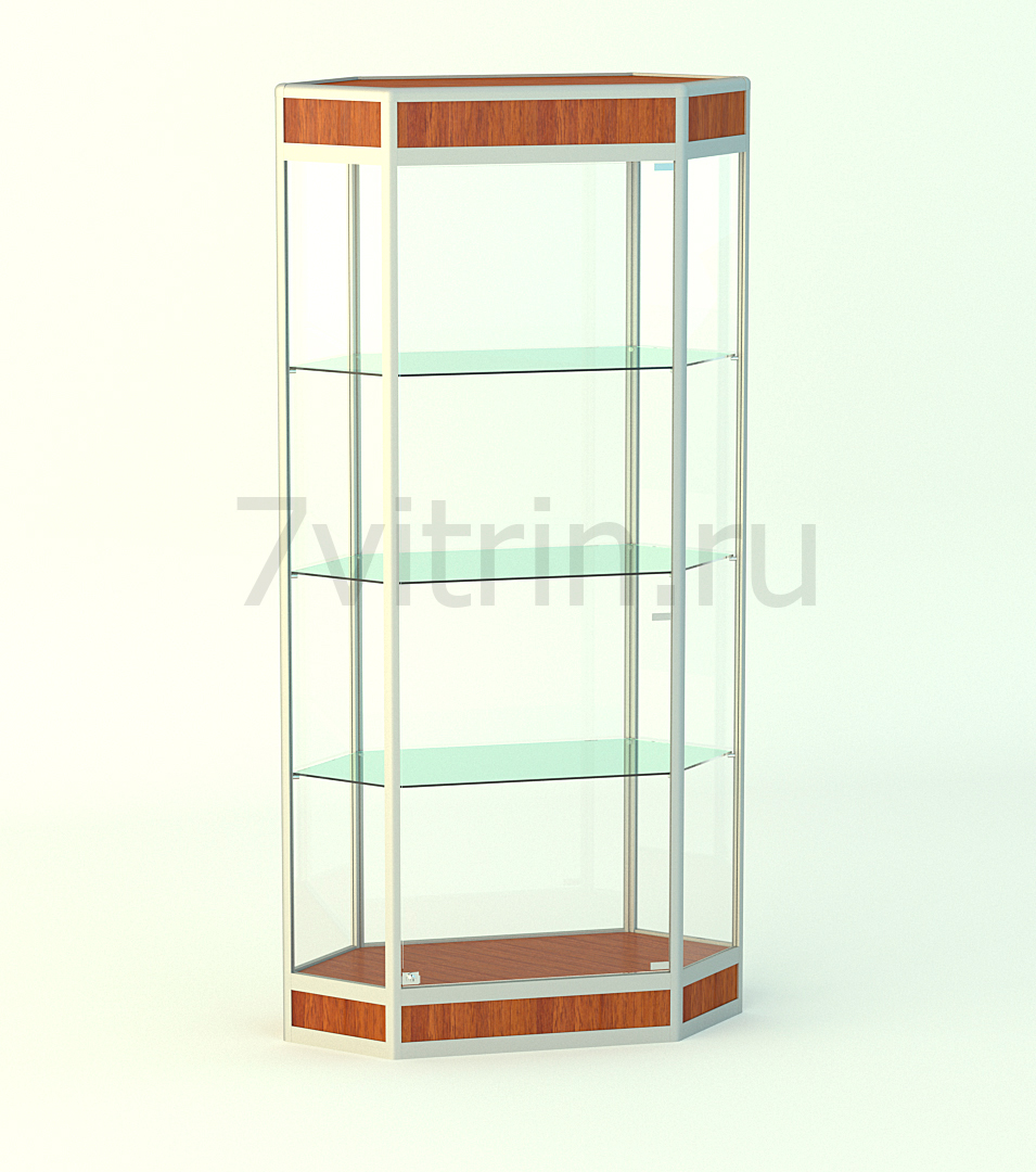 Витрина из каркаса алюминиевого профиля. Размер 2000х400х1000мм. Фриз высотой 150мм. Подиум высотой 300мм. Стеклянные полки толщиной 6мм. Двери в стеклянной части из стекла 5мм. Механизм распашной. Замок для стекла - накладной. Задняя стенка - стекло, хдф, зеркало (Выбор опционально). В комплектацию может входить подсветка, дополнительные полки. Цвет Профиля -матовое серебро, цвет облицовки - на выбор. Размеры витрин можно изменить.