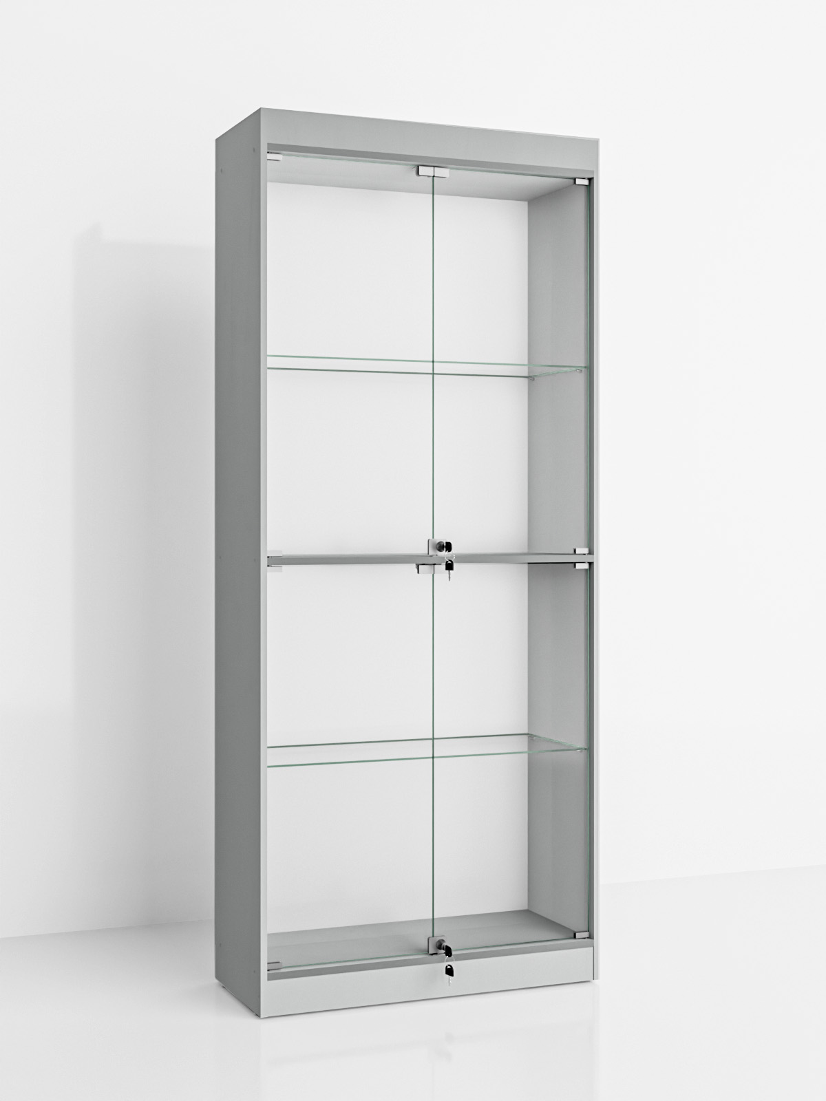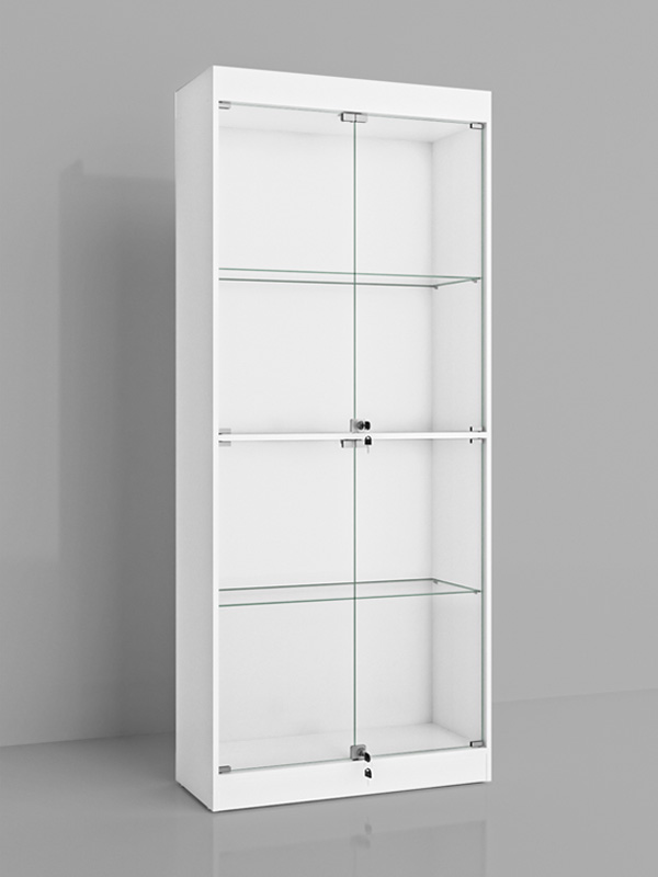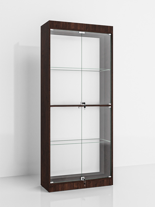 Витрина из дсп серии ЭКВ1-300 без накопителя. Размер 2000х300х900мм. (за счет отсутствия накопителя, появилась возможность выкладывать больше товара в стеклянную часть витрины). В комплектации: 2 стеклянные полки толщиной 5мм и 1 из ЛДСП 16мм. Задняя стенка - МДФ 3мм. Стеклянные дверцы с замком. Складской декор витрины: