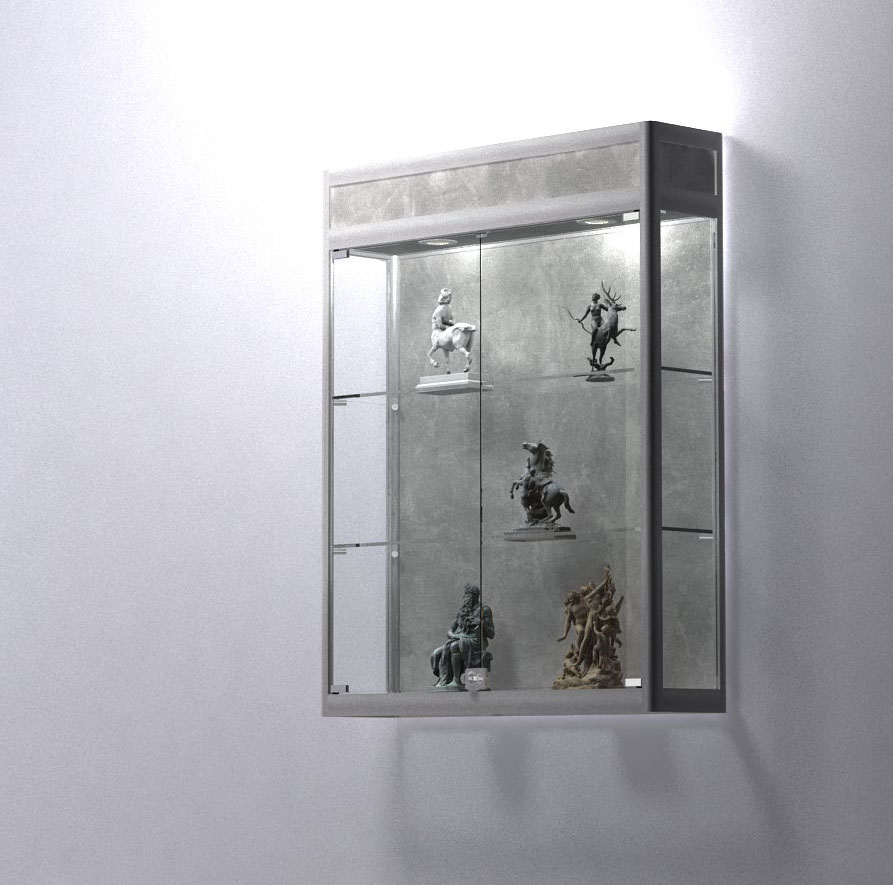 Навесная витрина из алюминиевого профиля, с фризом. Размер 1100х200х800мм.Витрина изготавливается из алюминиевого профиля, стекла, ЛДСП. Задняя стенка изготовлена из ХДФ с декором камня. Цвет профиля серебро матовое. В витрину можно установить разного рода подсветку. Светодиодные модули вертикальные, точечные споты.В витрине в комплекте 2 стеклянные полки, с возможностью регулировки по высоте с шагом 1мм.Двери витрины распашные с замком. По желанию заказчика можно установить распашной механизм открывания дверей. (доп опция)