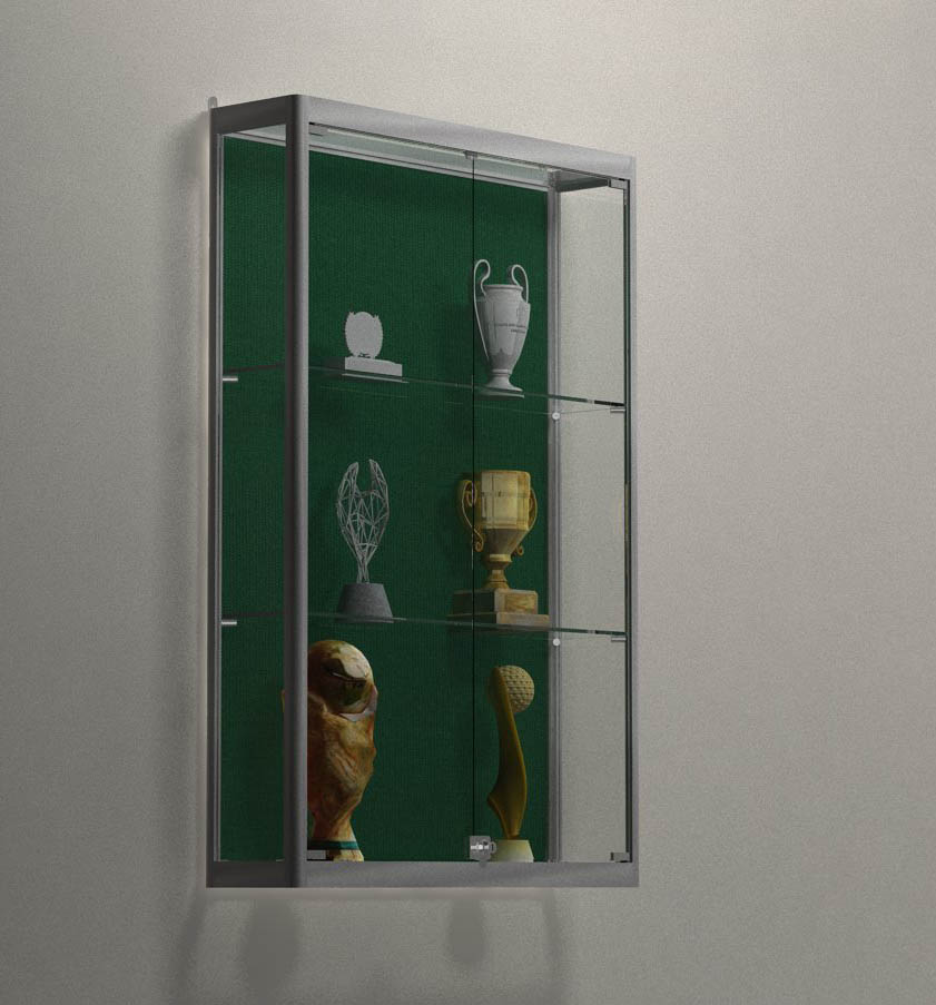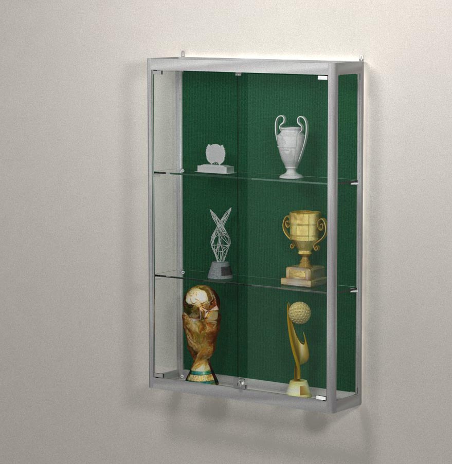 Навесная витрина для кубков из алюминиевого профиля с тканью.