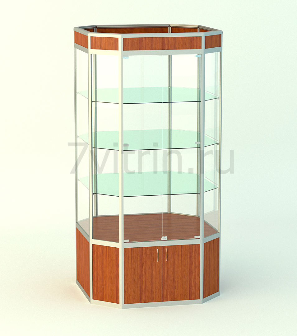 Витрина из алюминиевого профиля Алмаз угловая без фриза