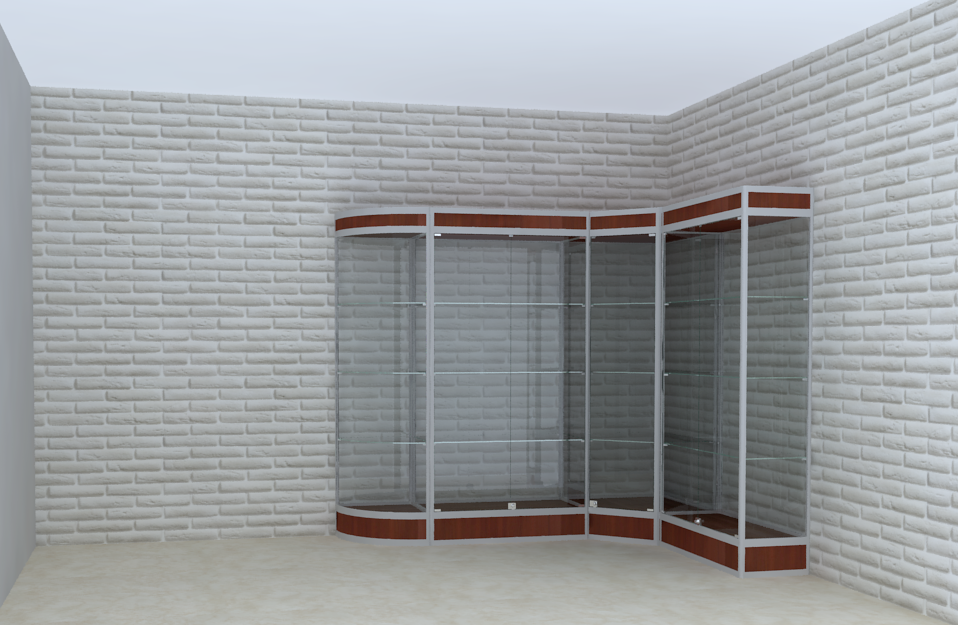Витрина из алюминиевого профиля, угловая серии "Турмалин RL"